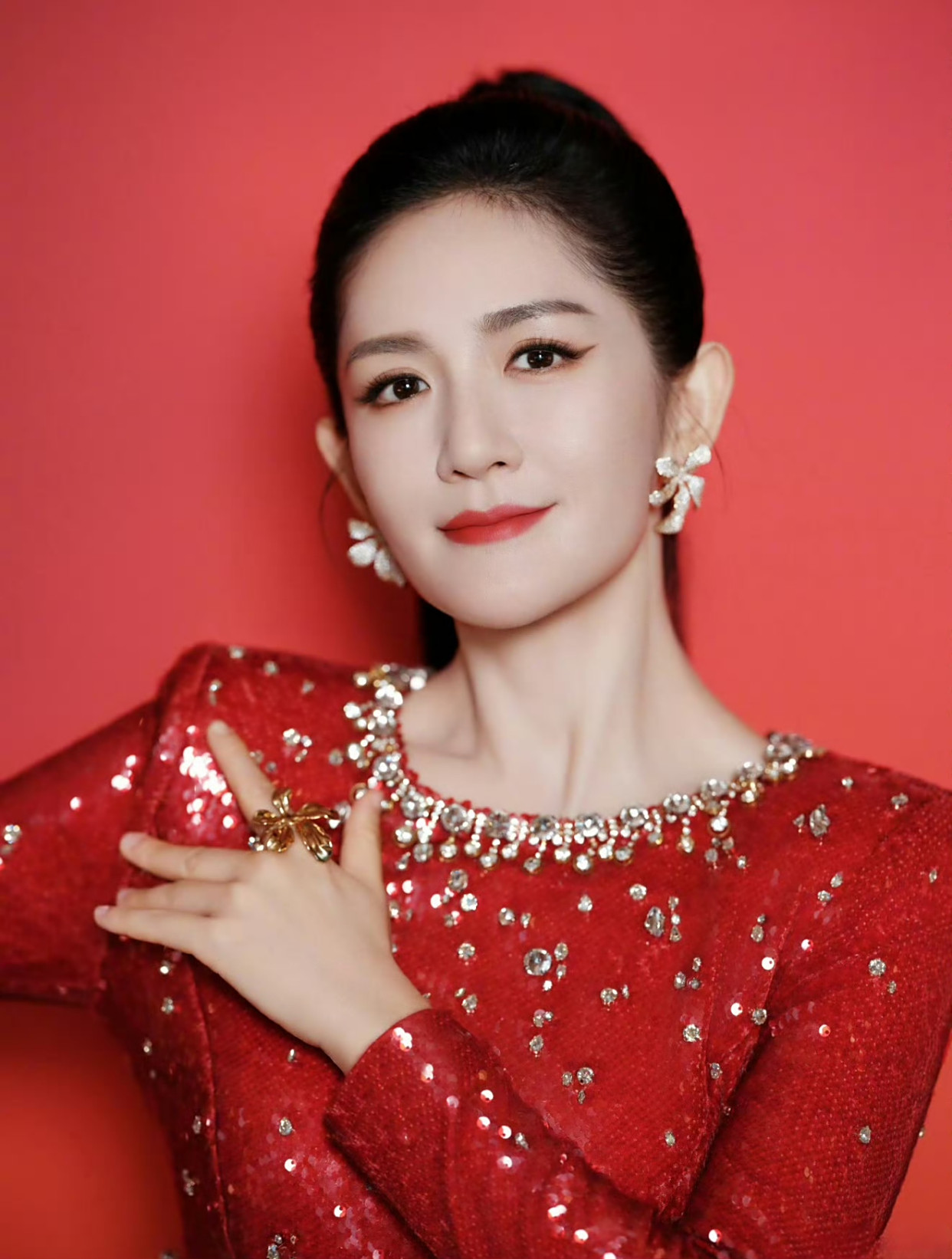 谢娜当晚一身红色亮片礼服现身,长发向后扎起露出额头嘉理证券,无论是妆容还是精神面貌,都很干练。
